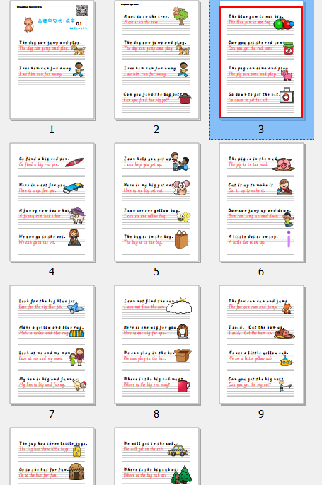 文件名:睿 E001: 资源 英语英文高频字句子中式花体抄写本1-2
