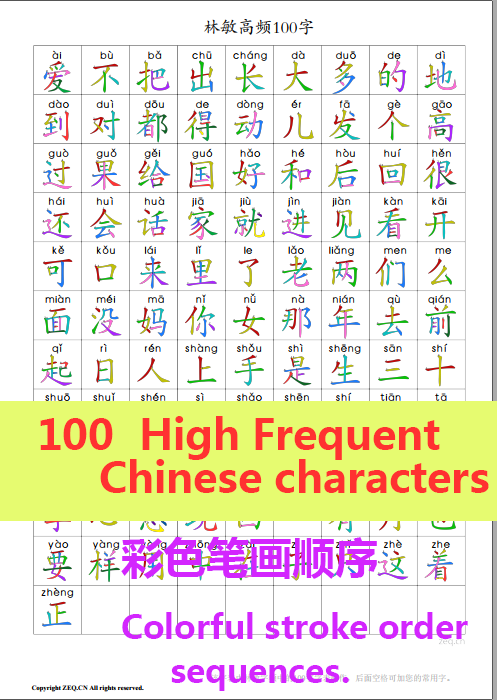 文件名:100 High Frequent Chinese characters 林敏高频汉字