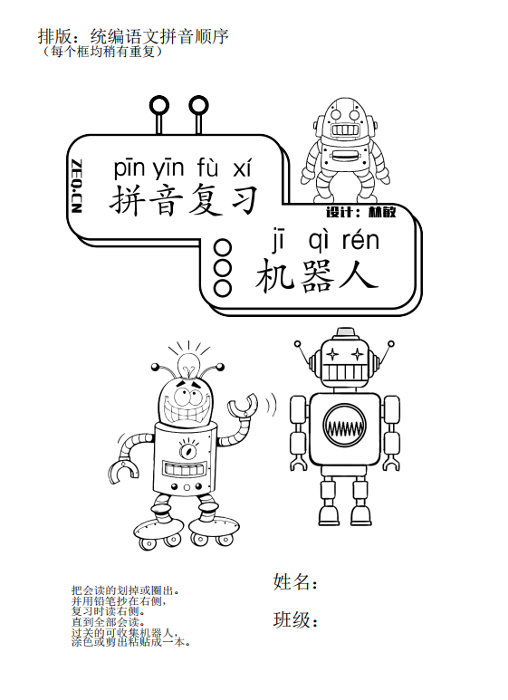 文件名:Pinyin reading practice-拼音复习读本-拼音复习机器人