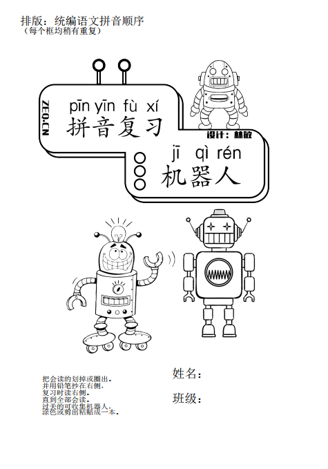 文件名:复习拼音机器人-迷你紧凑版-省纸
