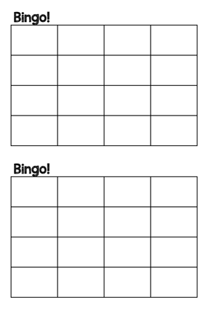 说明:空白,可以让学生先写上教师给定的词语,再进行BINGO游戏。