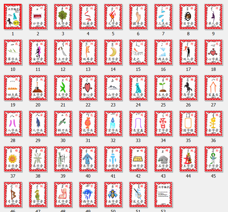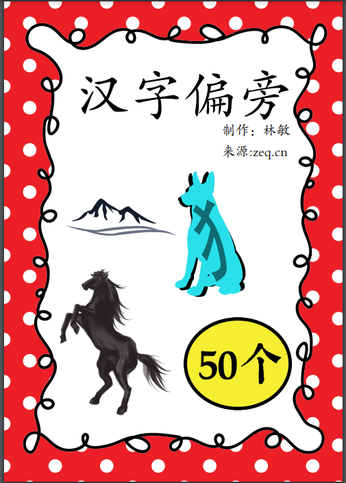 文件名:偏旁挂图50张-大红圆Chinese Radical flashcards A4 - 50pages
