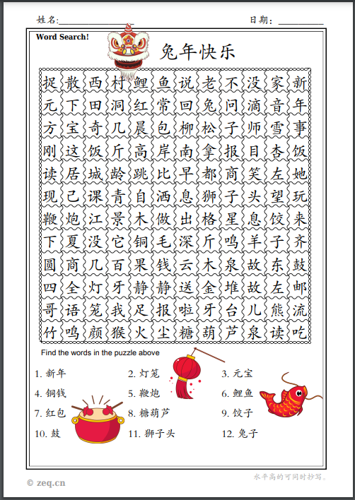 文件名:兔年找一找繁体简体WordSearch