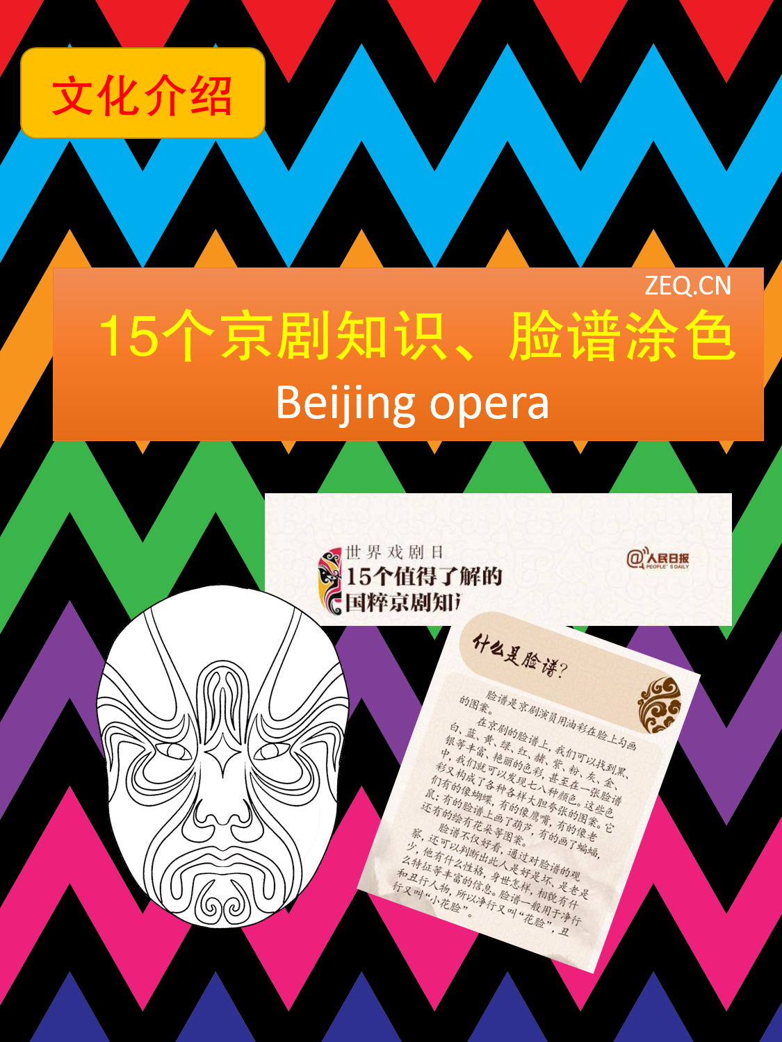 文件名:15个脸谱知识和一张脸谱涂色 ZEQ.CN