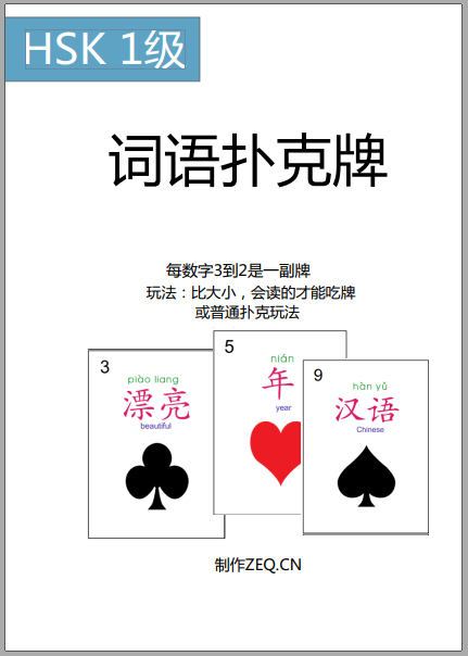 文件名:HSK1级扑克牌 52页 HSK一级每页4张
