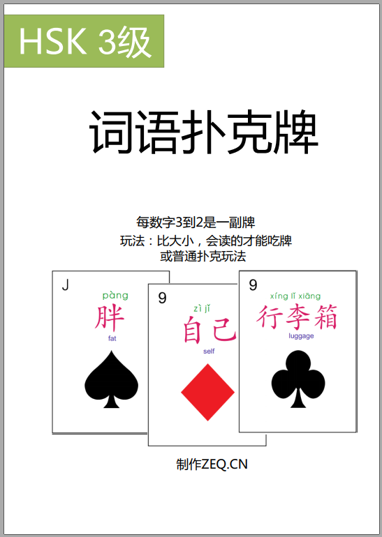 文件名:HSK3级扑克牌 91页 HSK一级每页4张