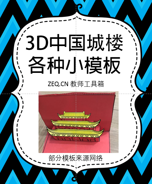 文件名:3D中国城楼和各种小模板,卡片模板 多张图