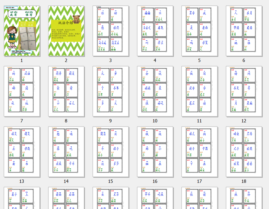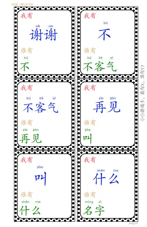 文件名:HSK1级-30张,我有谁有游戏词卡