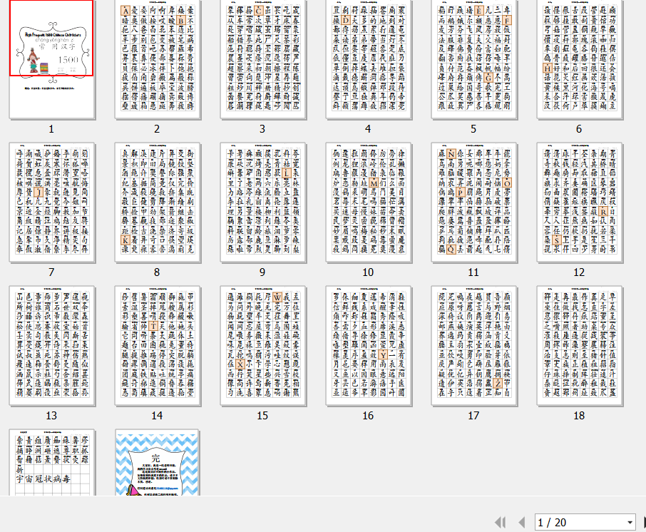 文件名:林敏高频字1500-字本-18P 作者其他作品列表 本站价格:2.8元 支付宝购买并马上下载 如果该文件是H5,大部分H5资源得到的是网址 百度网盘:有 文件大小:1.96 MB(可能) 文件页数:18 页 (可能) 说明:本商品是电子文件形式发送,拍下留邮箱。 Frequent 1500 Chinese characters -LinMin 8X5 in 1 page 18 pages in total. 1500个高频字,大字版,一页8X11个汉字。共计18页。 用途:学生写作文日记时当小字典使用。 中文教室布置用。 ![]() ![]() ![]() |