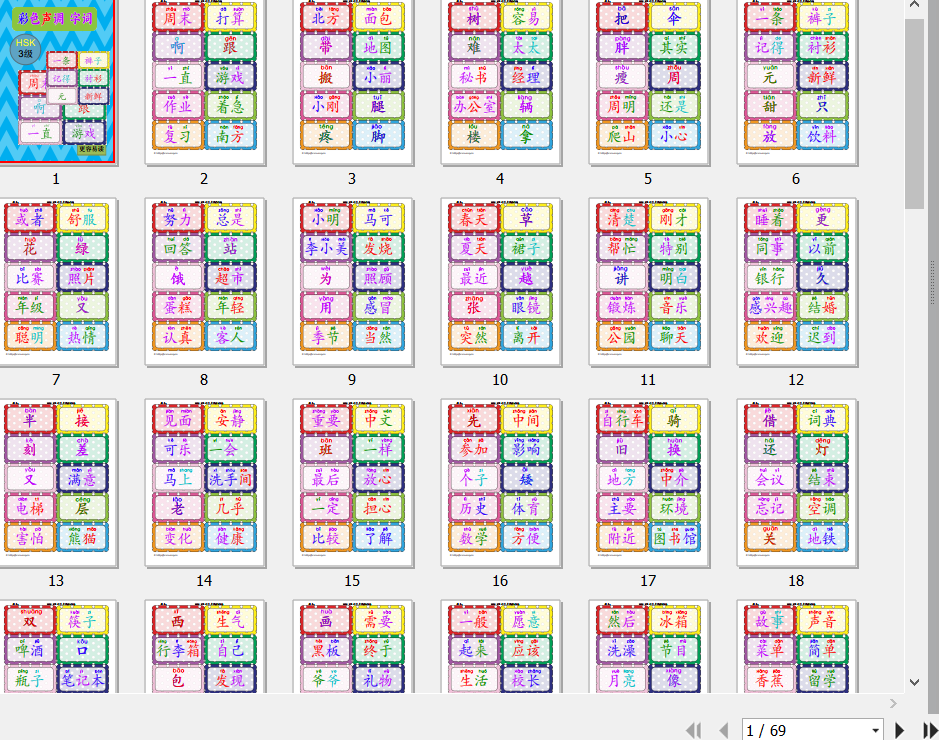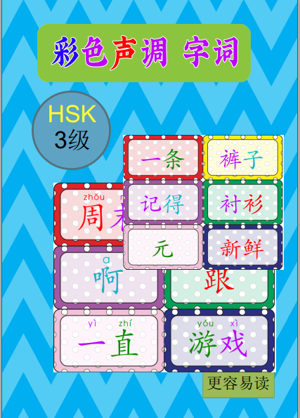文件名:2020- HSK 3 级 彩色声调小字词卡